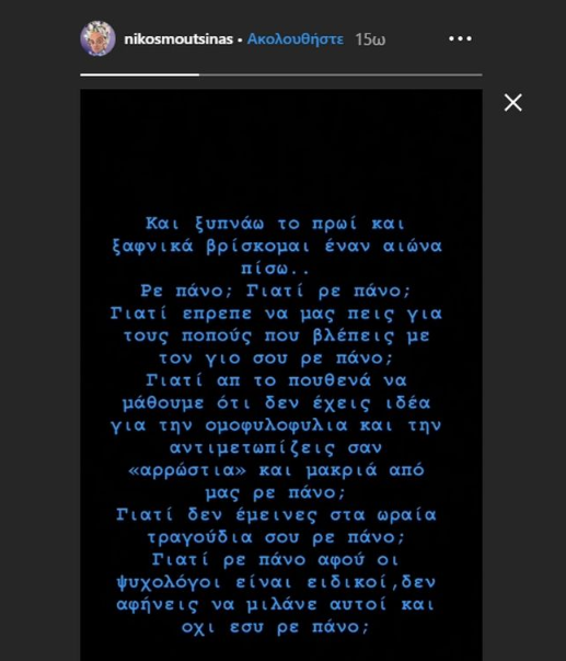 Ένας εξ αυτών και ο Νίκος Μουτσινάς, που ανέβασε το εξής Story στο Instagram: