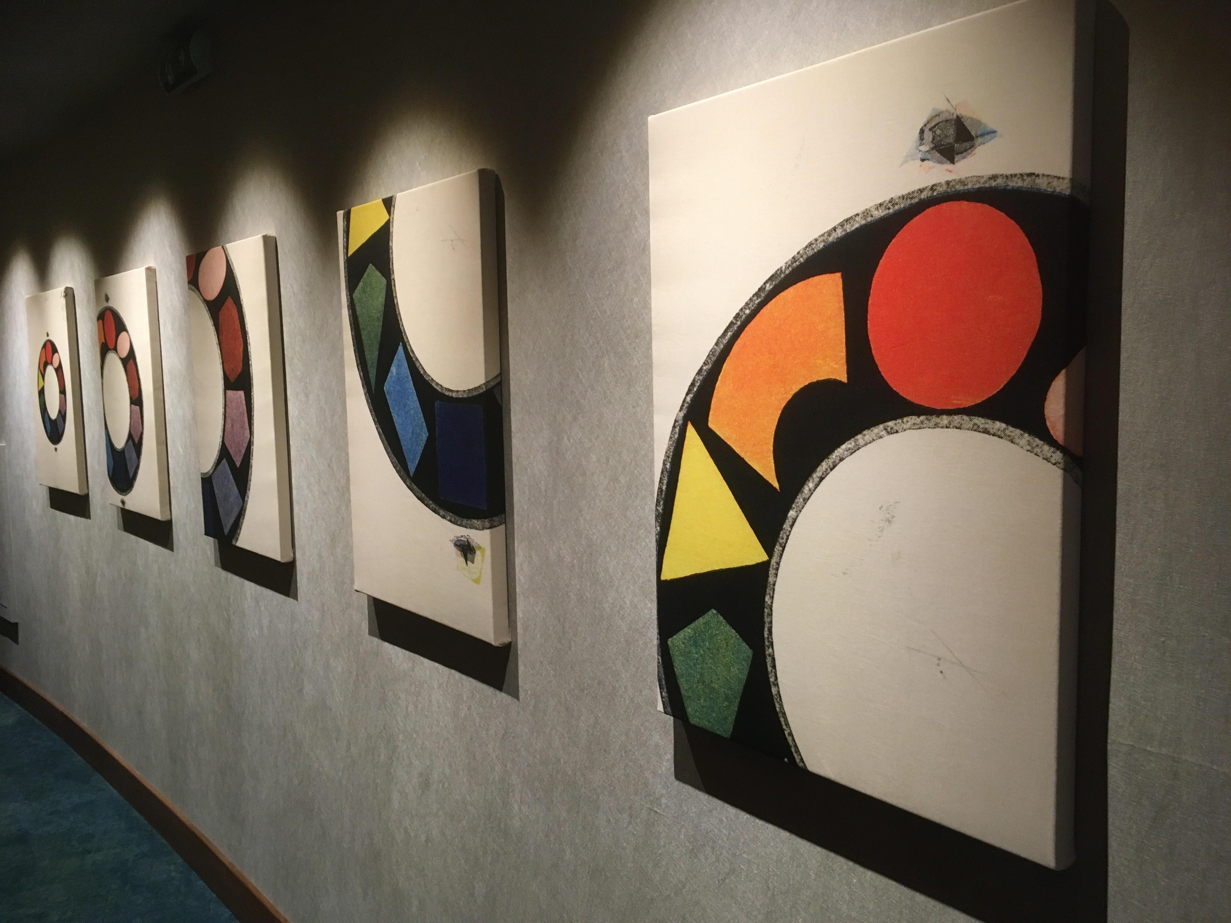”Όταν η Μόρφω Παπανικολάου, με την οποία έχουμε συνεργαστεί ξανά και γνωρίζει καλά τη συλλογή μας έκανε την πρόταση, ενθουσιαστήκαμε. Η διαδικασία κράτησε αρκετό καιρό. καιρό. Κάναμε πάρα πολλές δοκιμές, πριν καταλήξουμε στα συγκεκριμένα επτά έργα που τελικά χρησιμοποιήθηκαν. Επιλέξαμε μοτίβα που θα μεγενθύνονταν, ένα έργο για κάθε όροφο. Στη συνέχεια ανέλαβε η Φωτεινή Καρυωτάκη που είναι εικαστικός και εξειδικεύεται σε τυπώματα σε υφάσματα. Συνεργάστηκε μαζί μας στο κομμάτι της μετατροπής των σχεδίων σε σχέδιο για ύφασμα. Καθώς σχεδιάζει η ίδια υφάσματα έγινε εξαιρετική δουλειά. Ακολούθησαν μια σειρά από δοκιμές σε υφάσματα για να επιλέξουν το κατάλληλο. Το αποτέλεσμα μας δικαιώνει όλους”, μας λέει η αν.γενική διευθύντρια του MOMus και διευθύντρια του MOMus-Μουσείου Μοντέρνας Τέχνης, Μαρία Τσαντσάνογλου.
