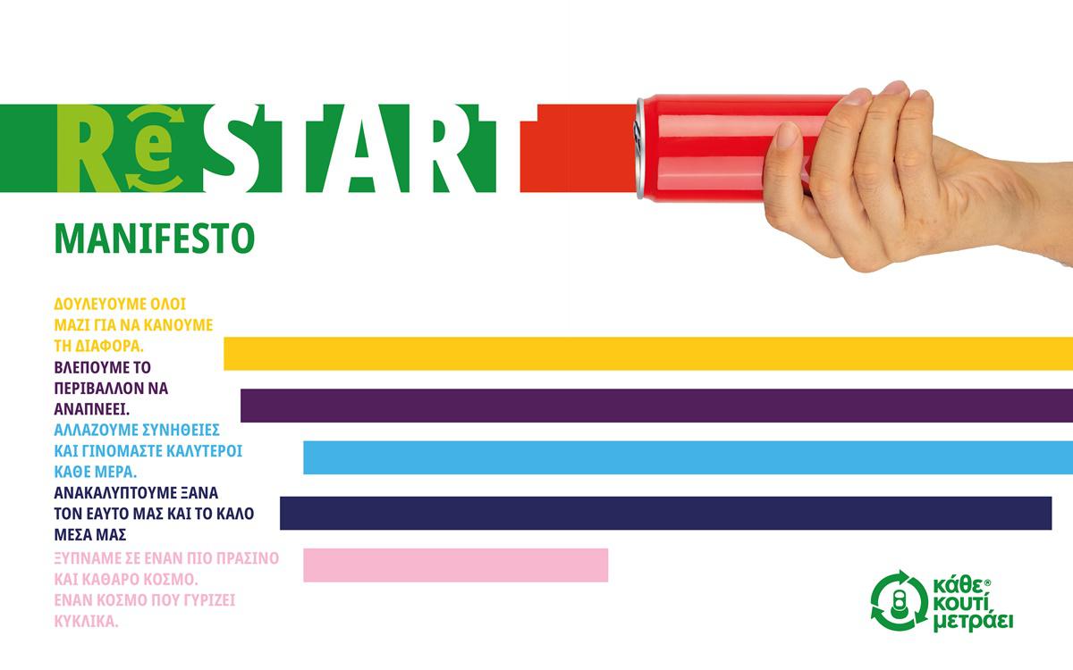 Καθώς όμως η προσπάθειά μας για ανακύκλωση δεν πρέπει να σταματήσει, το Κάθε Κουτί Μετράει δημιούργησε την καμπάνια ReSTART για να μας υπενθυμίσει την ανάγκη να μην επιστρέψουμε σε παλιές, επιβλαβείς για το περιβάλλον, συνήθειες και να συνεχίσουμε την προσπάθεια να γίνουμε καλύτεροι. To επικοινωνιακό μανιφέστο του ReSTART, που ξεδιπλώνεται στα social media αυτό το διάστημα, χωρίζεται στα εξής στάδια: R(e) THINK – R(e) COVER – R(e) CYCLE – R(e) INVENT – R(e)START.