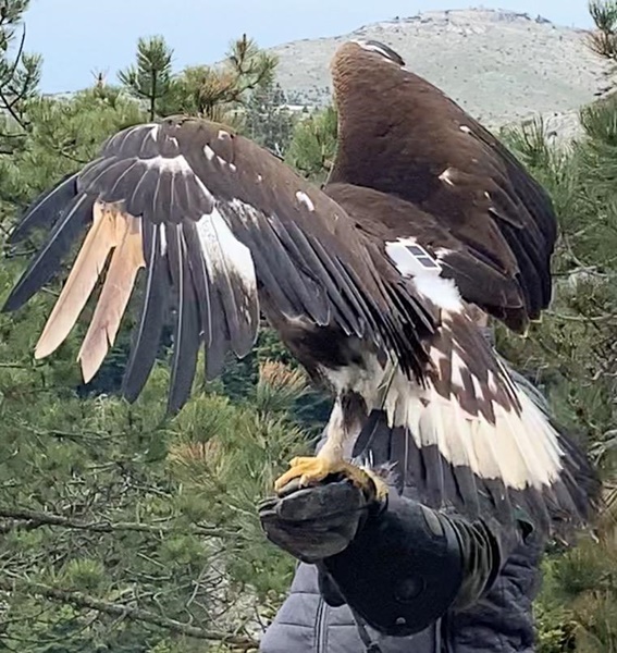 Χρυσαετός που πριν από οκτώ μήνες -στο στάδιο του νεοσσού- είχε διαπιστωθεί με πρόβλημα γενετικής δυσμορφίας -πολυμελίας πετάει και πάλι ελεύθερος στο φυσικό του περιβάλλον στο βουνό της Πάρνηθας.