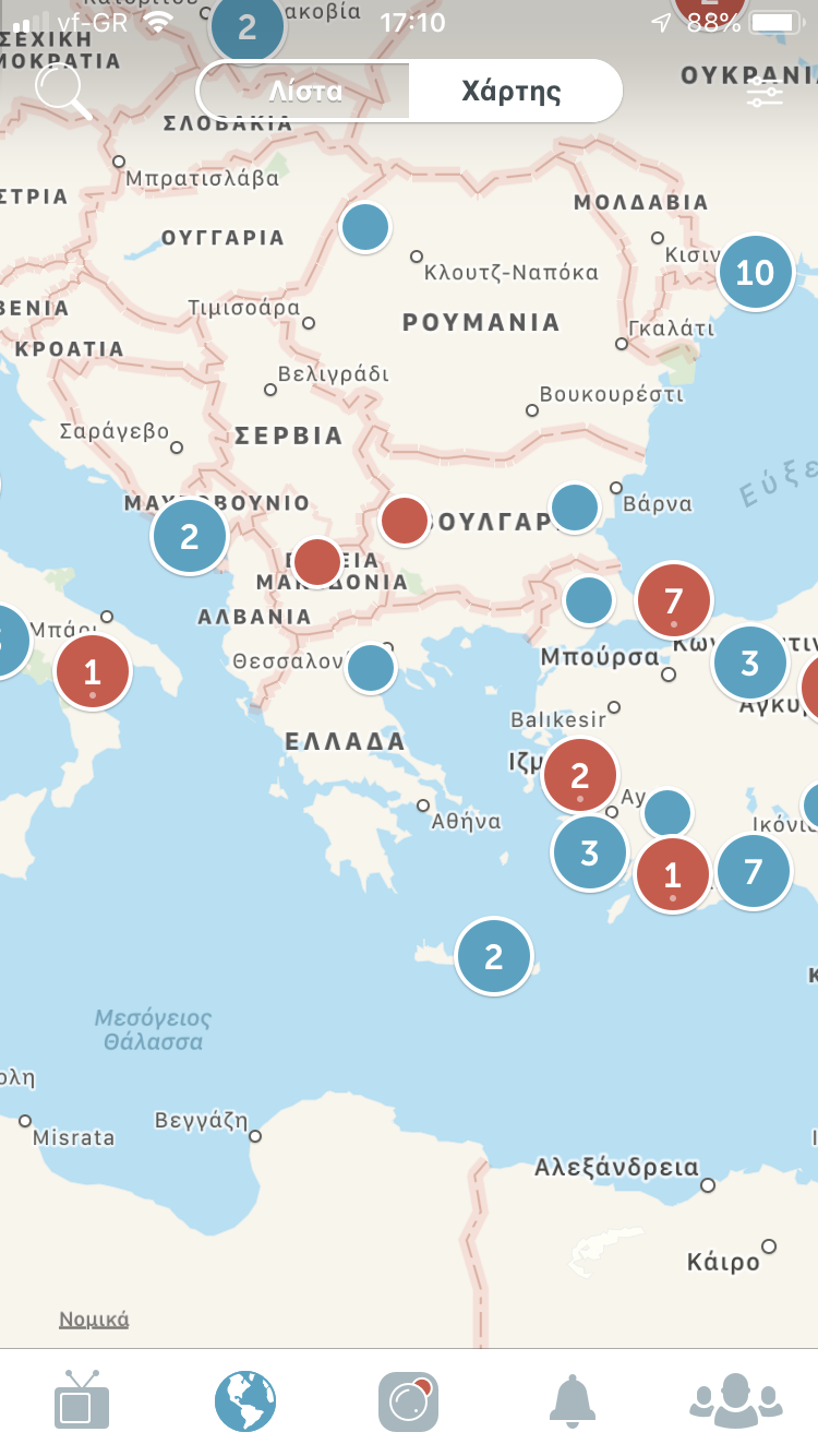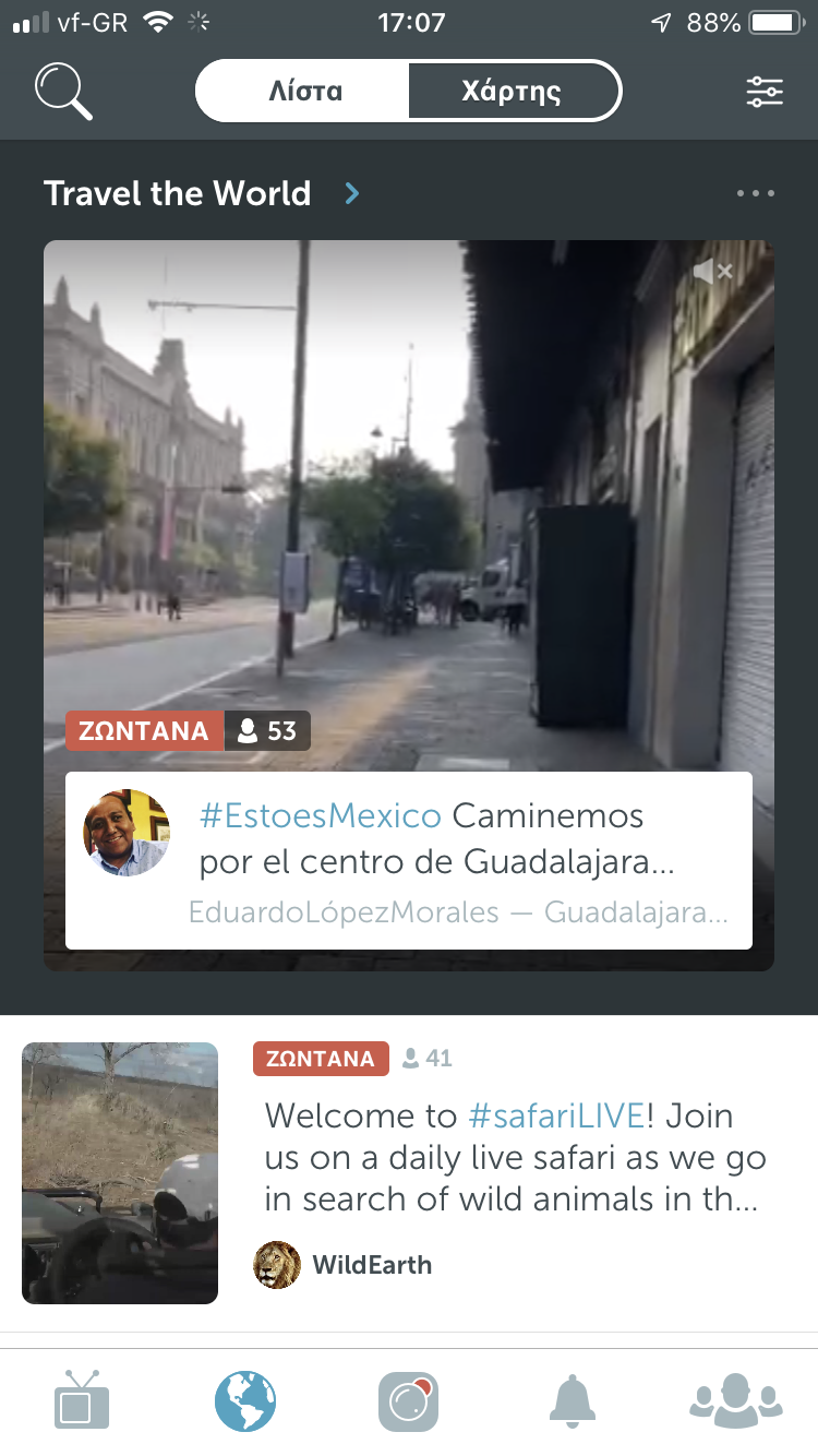 Σε αυτή την εφαρμογή παρουσιάζεται ένας παγκόσμιος χάρτης, στον οποίο οι χρήστες παρακολουθούν πόσα live streaming συμβαίνουν αριθμητικά σε κάθε περιοχή.