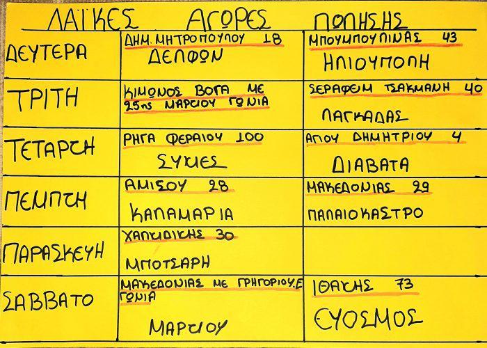 Θα τους βρεις στις παρακάτω λαϊκές της πόλης.