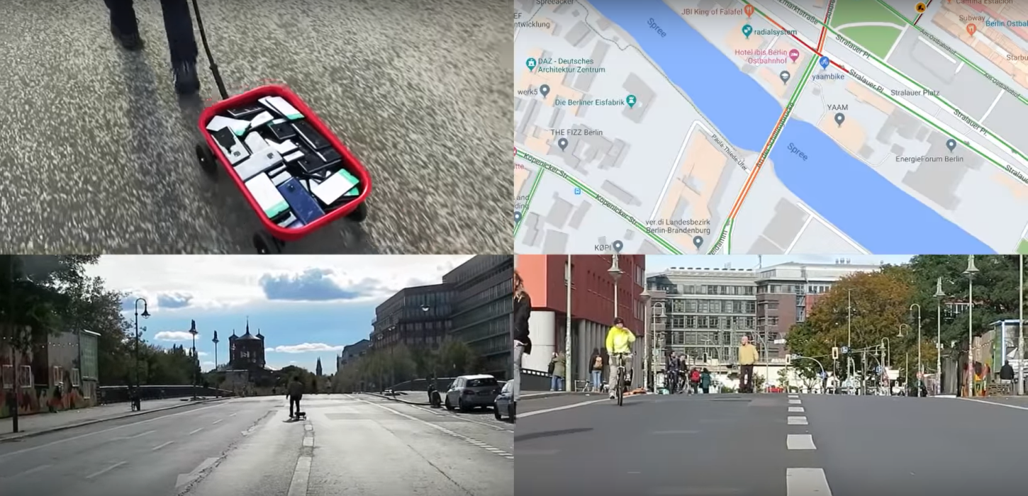 Άντρας μετακινεί 99 κινητά τηλέφωνα σε καροτσάκι σε δρόμους για να προκαλέσει κυκλοφοριακό κομφούζιο στους χάρτες της Google. Ο ίδιος ανέβασε βίντεο με την «δράση» του πριν λίγες μέρες έχοντας συγκεντρώσει ήδη δύο εκατομμύρια προβολές.