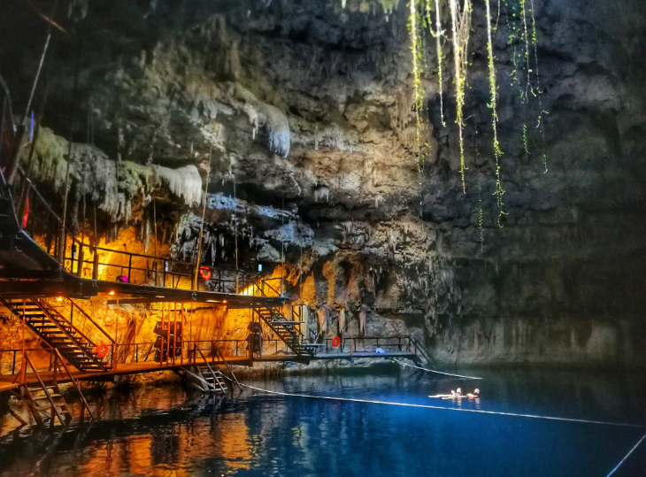 Οι επισκέπτες που διαμένουν στο Grand Velas Riviera Maya του Μεξικού , ένα AAA 5 Diamond Hotel, μπορούν να κατέβουν κάτω από την επιφάνεια της Γης για μια ιδιωτική περιήγηση στο Chukum Cenote, ένα μικρότερο γνωστό σπήλαιο 130 ποδιών γεμάτο σταλαγμίτες και σταλακτίτες.