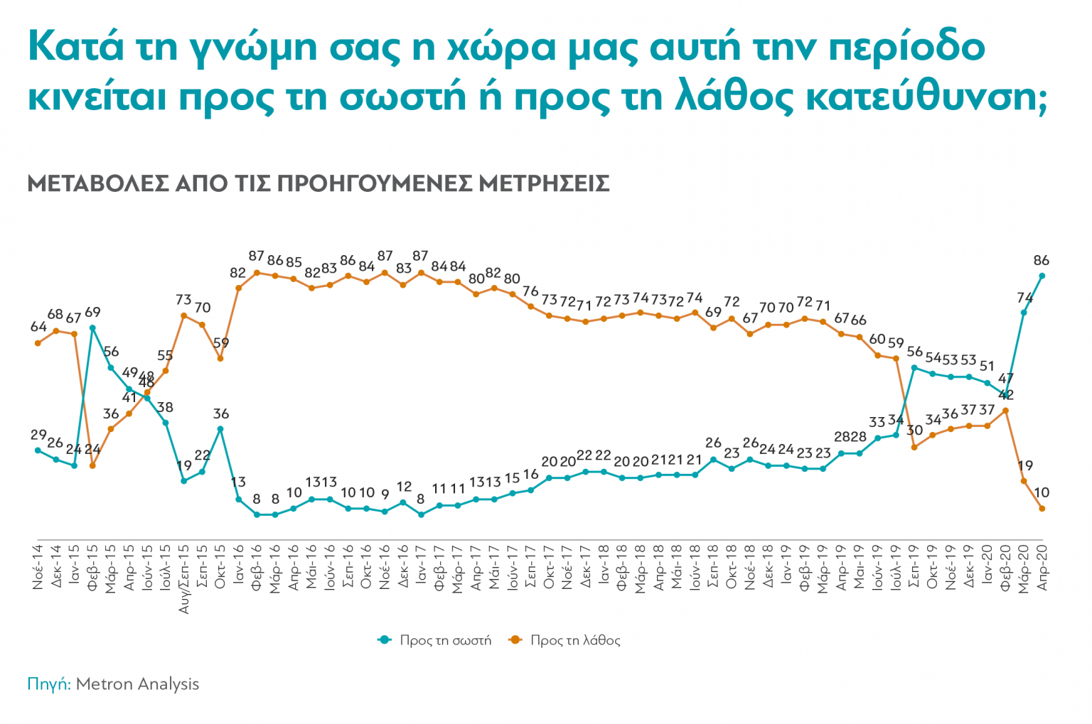 Σήμερα το 85,7% των Ελλήνων πιστεύουν ότι τα πράγματα πηγαίνουν προς την σωστή κατεύθυνση. Πρόκειται για ένα ανεπανάληπτο ποσοστό.