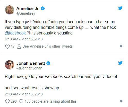 Αυτό ακριβώς συνέβη πρόσφατα όταν η αναζήτηση της φράσης ”video of” συμπληρωνόταν από μια σειρά προσβλητικών, προκλητικών και χυδαίων αποτελεσμάτων. Αρκετοί ήταν οι λογαριασμοί στο twitter που επεσήμαναν με σχετικά screenshots τη συγκεκριμένη δυσλειτουργία του facebook.