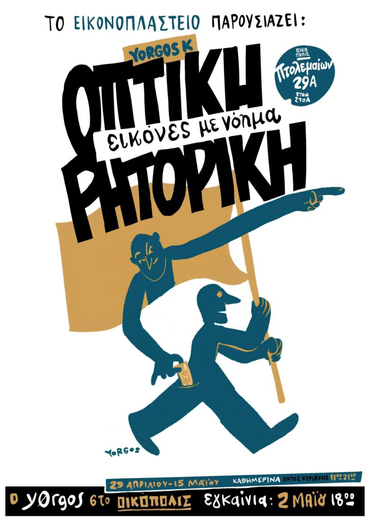Η έκθεση «Οπτική Ρητορική: Εικόνες με Νόημα» παρουσιάζεται στο Οικόπολις (Πτολεμαίων 29Α) μέχρι και τις 15 Μαΐου, από τις 18:00 μέχρι τις 21:00. Εγκαίνια: 2 Μαΐου στις 18:00.