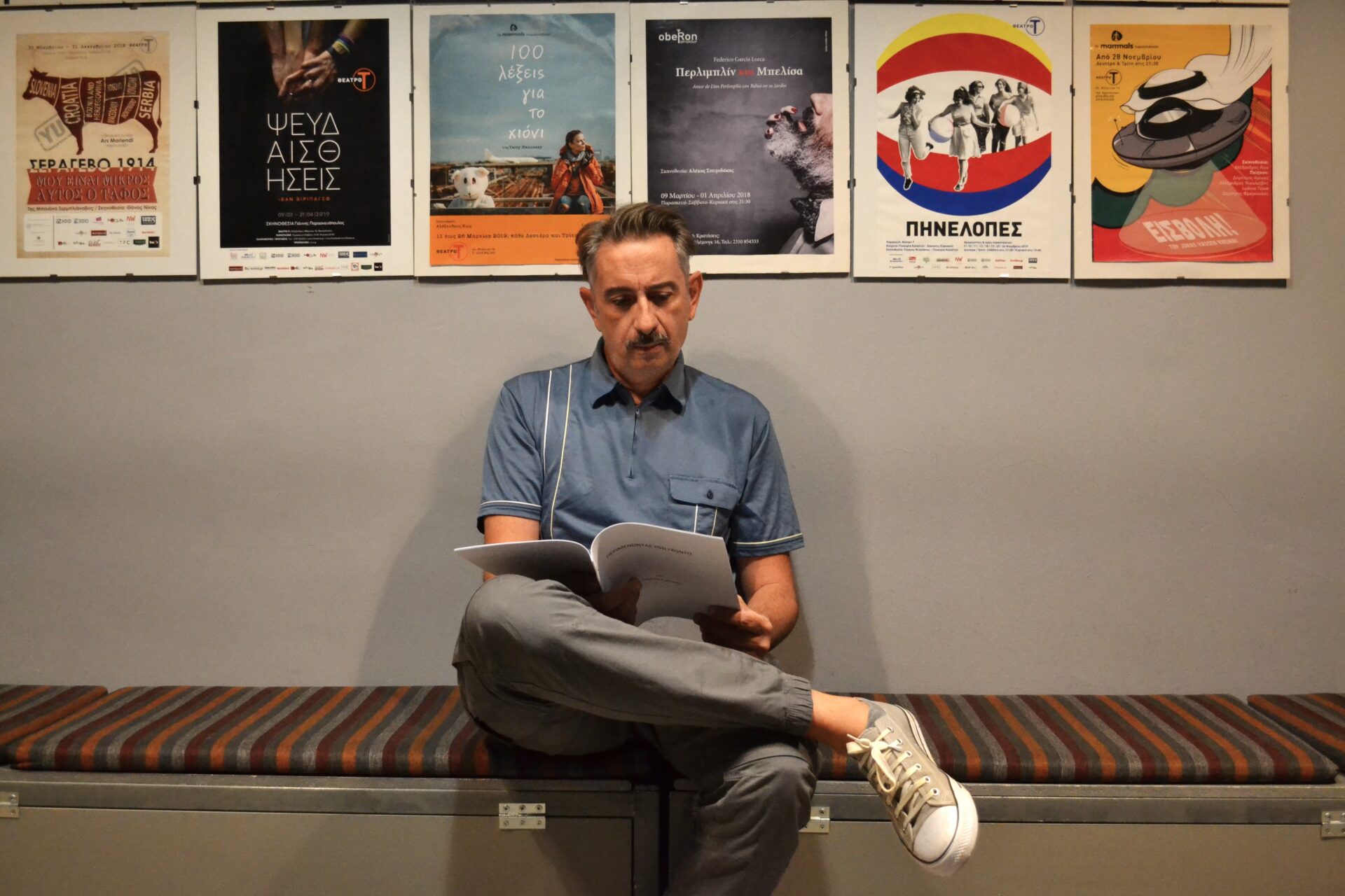 Είμαι, όπως φαίνεται και από τις φωτογραφίες, στο θέατρο Τ, λεπτά πριν την πρεμιέρα, με τα ρούχα (και το μουστάκι) του Χρόνη. Ο Χρόνης είναι ένας κομπιναδόρος που θα έρθει αντιμέτωπος με ένα σπουδαίο θεατρικό έργο μέσα στη φυλακή και τίποτα δεν θα είναι το ίδιο μετά από αυτό.