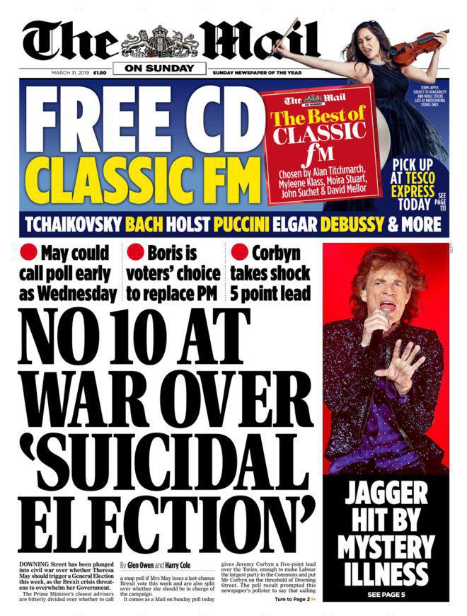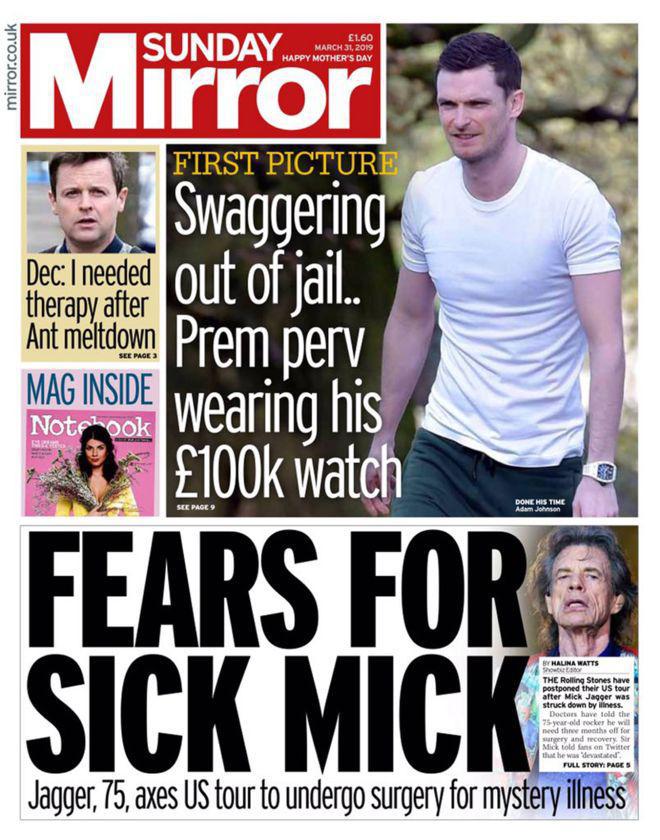 Ακολουθούν τα σημερινά πρωτοσέλιδα των εφημερίδων με πρώτο θέμα την ακύρωση της περιοδείας των Rolling Stones και την κατάσταση του Μικ Τζάγκερ: