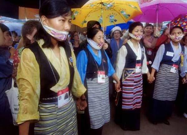 Το 1995 στην Κίνα, γυναίκες από το Θιβέτ πραγματοποιούν διαδήλωση διαμαρτυρίας για την παραβίαση των ανθρωπίνων δικαιωμάτων στην πατρίδα τους.