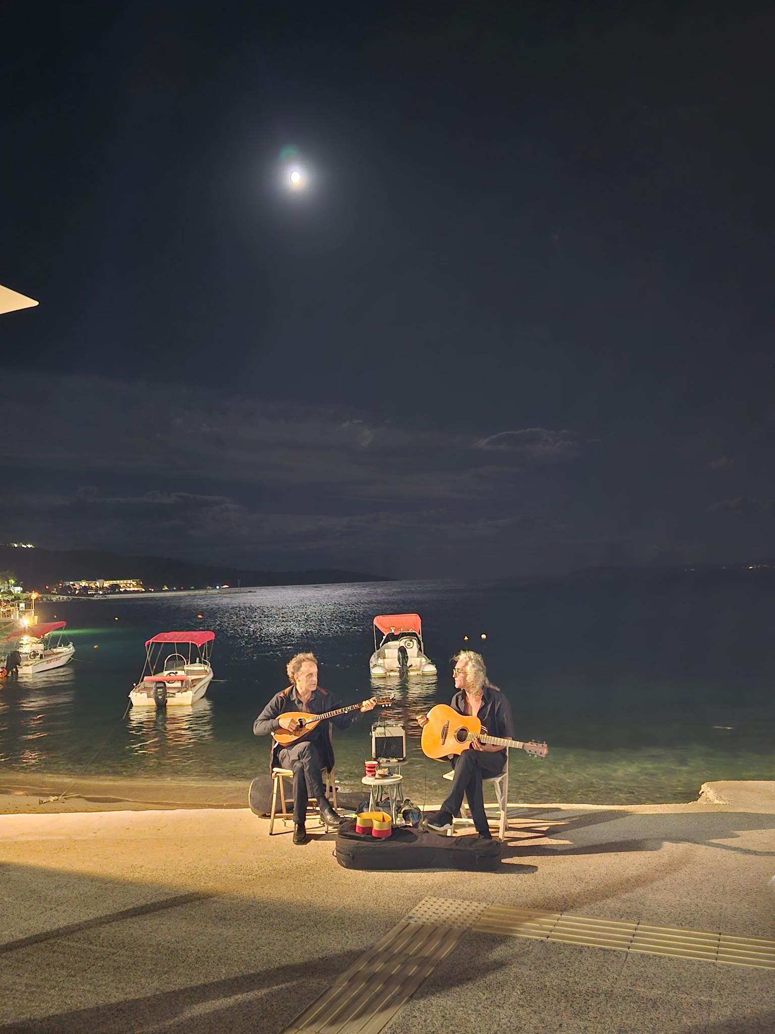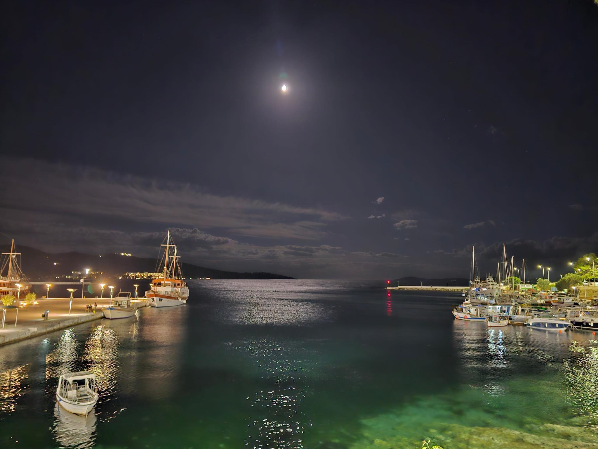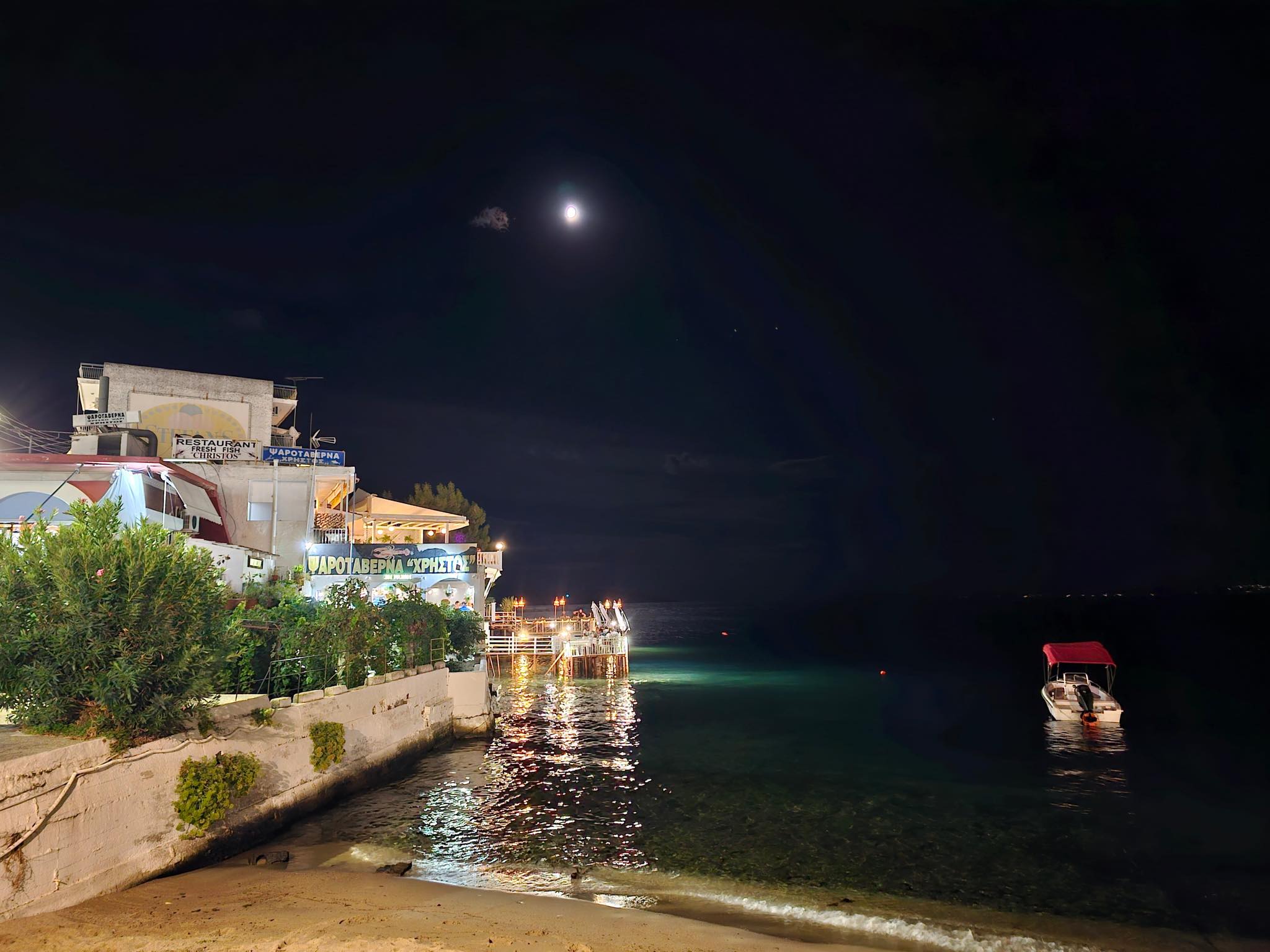 Ειδυλλιακή εικόνα τη νύχτα με το φεγγάρι να φωτίζει τα γαλήνια νερά του Τορωναίου κόλπου