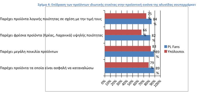 Αυτό το στοιχείο δείχνει ότι τα PL αποτελούν πλέον μέρος της εταιρικής ταυτότητας της αλυσίδας σουπερμάρκετ και αποτελούν μέρος της εικόνας τους προς το καταναλωτικό κοινό.