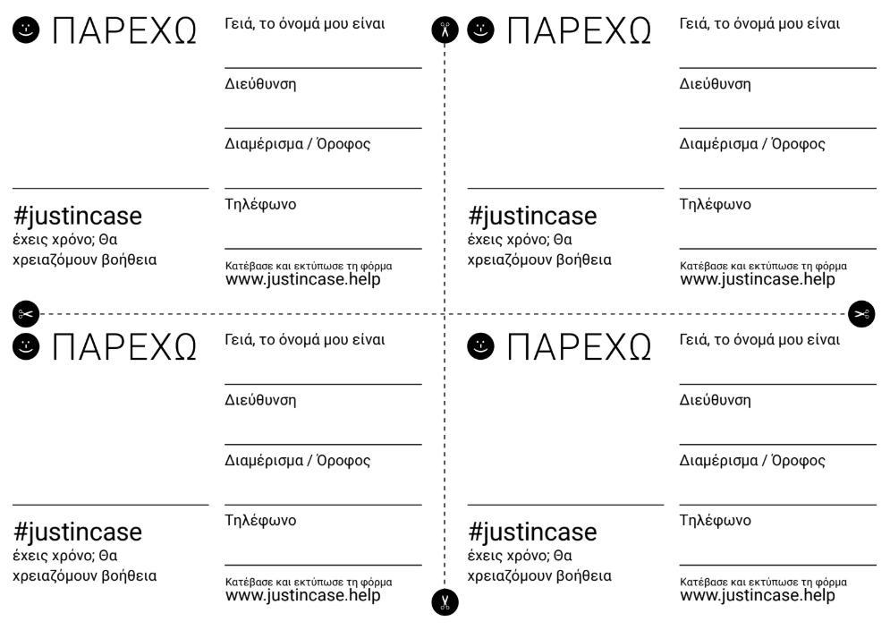 2. εκτυπώστε τη φόρμα σε σελίδα Α4 και κόψτε στις διακεκομμένες γραμμές σε μέγεθος κάρτας