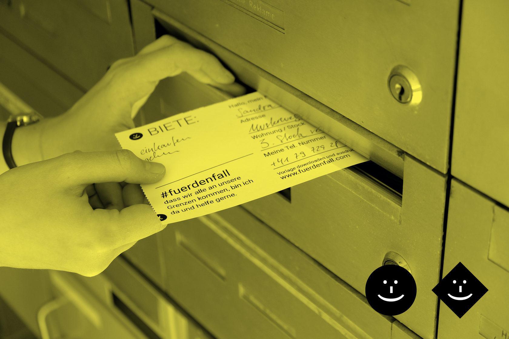 Είτε πρόκειται για ψώνια, φροντίδα των παιδιών ή συμβουλές κατά της βαρεμάρας: Το «φυλλάδιο» #fuerdenfall δίνει τη δυνατότητα σε εσάς και τους διπλανούς σας – στη γειτονιά, να λάβετε και να δώσετε βοήθεια. Γιατί οι μικρές αποστάσεις ευνοούν τη γρήγορη δράση. Η πρωτοβουλία βοηθά έτσι τις γειτονιές να οργανωθούν τοπικά, αποτελεσματικά και με ασφάλεια.