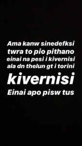“Άμα κάνω συνέντευξη τώρα το πιο πιθανό είναι να πέσει η κυβέρνηση αλλά δε θέλουν γιατί η τωρινή κυβέρνηση είναι από πίσω τους”, είπε αναφερόμενος στους δημοσιογράφους.