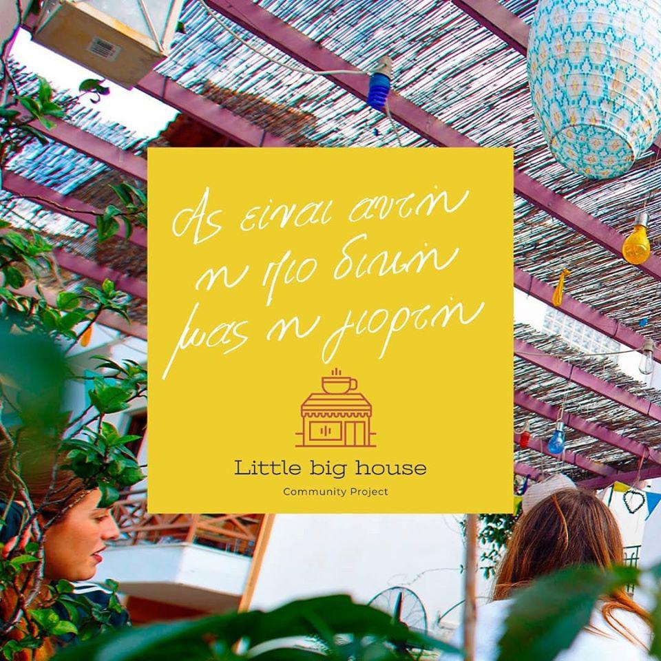 Το αγαπημένο Little Big House ανακοίνωσε πως επιστρέφει, εγκαινιάζοντας τη νέα εποχή του ως community project (2020) σε συνεργασία με την Κοιν.Σ.Επ. “ΑΡΓΩ” με το Little Big House Cafe να ανοίγει τις πόρτες του την Παρασκευή 29/5. Θα είναι ανοιχτό από Τρίτη έως Κυριακή από τις 11:00 το πρωί έως τις 23:00 το βράδυ με καινούριες γεύσεις, ανανεωμένο μενού, φρέσκες ιδέες και πολλά νέα να μοιράζεται με παλιούς και νέους φίλους.