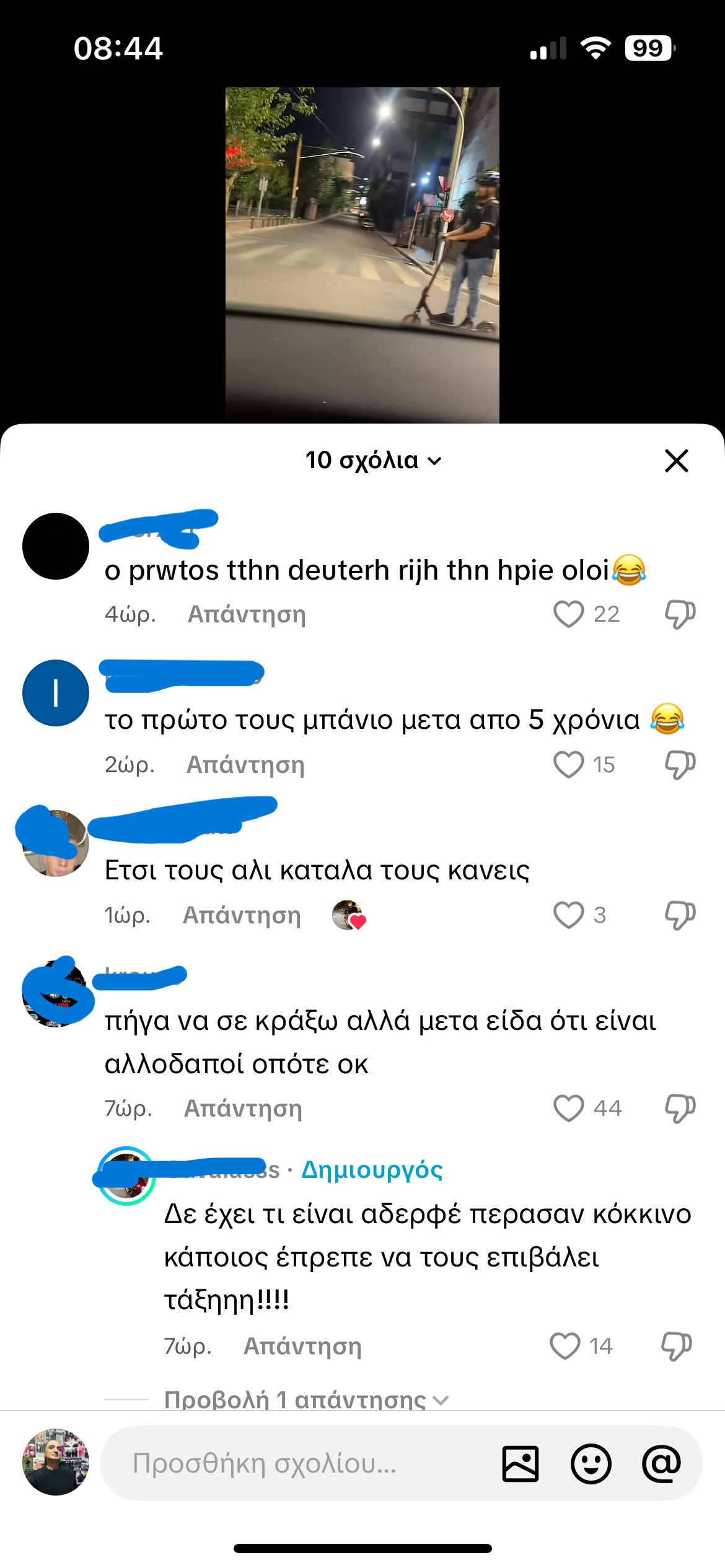 132.000 άνθρωποι είδαν το βίντεο που ανέβηκε στο TikTok και δείχνει ένα ένα αυτοκίνητο που κάνει βόλτες γύρω από την Ομόνοια και το Σύνταγμα και το οποίο πλησιάζει ανθρώπους που μετακινούνται με ηλεκτρονικό πατίνι, είναι σκούρου δέρματος, άρα πρόσφυγες και μετανάστες,