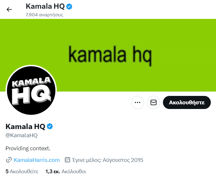 Μετά από αυτό το tweet, η καμπάνια της Χάρις στο X “@kamalahq” άλλαξε το εξώφυλλο στο X με το σύνθημα με το όνομα του προφίλ σε λαχανί φόντο και με την γραμματοσειρά του άλμπουμ.
