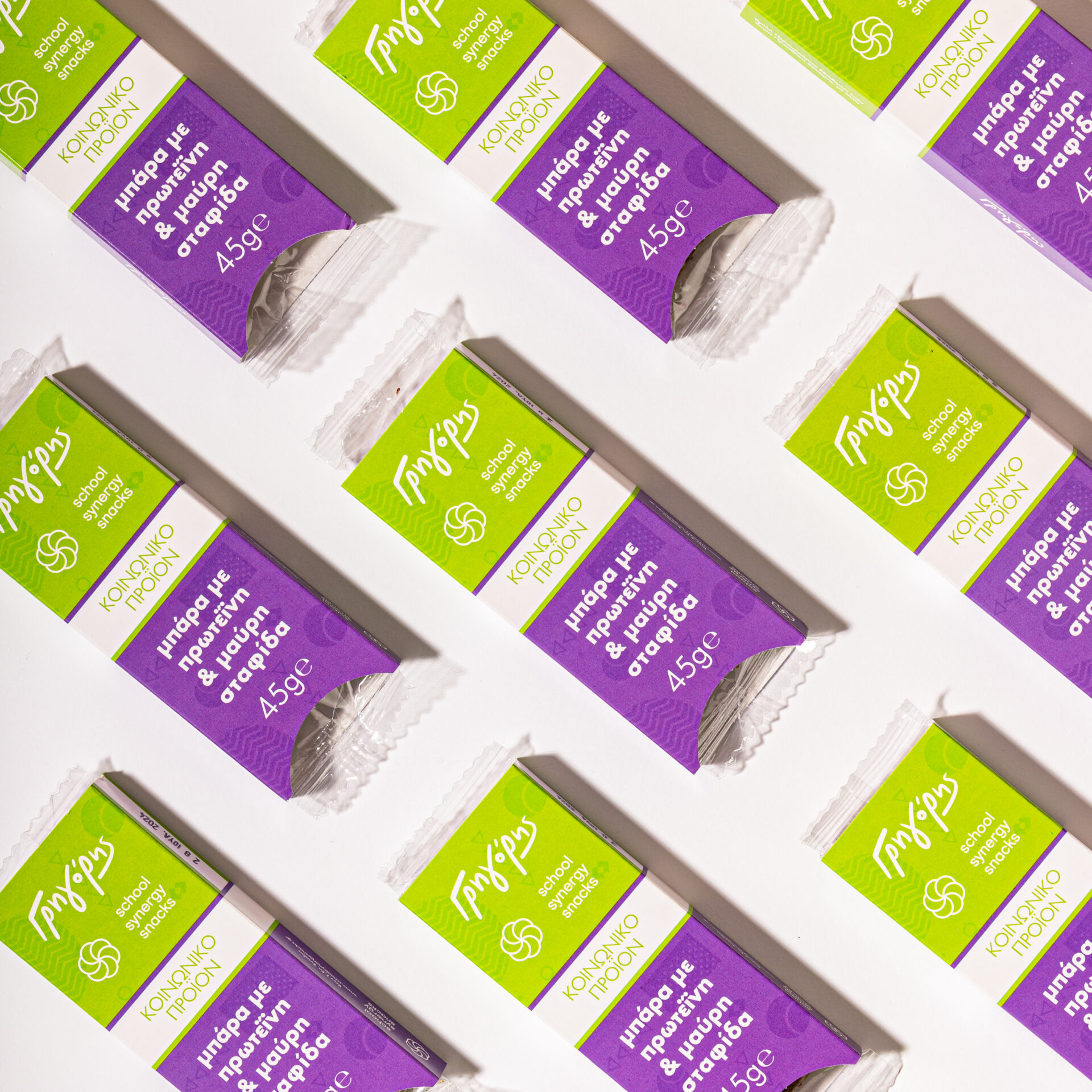Για το λόγο αυτό ο Γρηγόρης σχεδίασε ένα νέο προϊόν, με κοινωνικό χαρακτήρα, για… καλό σκοπό. Πρόκειται για τη νέα μπάρα Γρηγόρης – School Synergy Snacks, η οποία συσκευάζεται από νέους με αναπηρία, δίνοντάς τους έτσι τη δυνατότητα να βιοποριστούν και να ενταχθούν στην αγορά εργασίας.