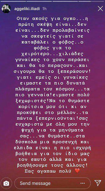 «Ένα μεγάλο ευχαριστώ στη γιατρό μου Μαρία Φιωτάκη και σε όλους τους υπέροχους γιατρούς στο Ιασώ. Τέλος καλό», έγραψε ενώ συνέχισε με μια πιο αναλυτική ανάρτηση: