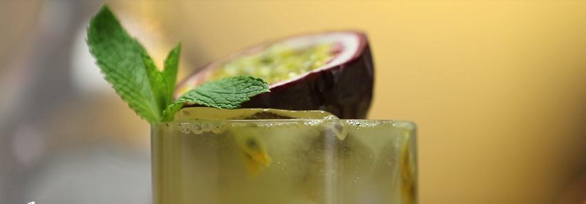 Εκτέλεση: Σε ένα μεγάλο ποτήρι νερού, βάλτε την ψίχα από το passion fruit, τον δυόσμο ή την μέντα, τα 2 κομμάτια lime, και την καστανή ζάχαρη και πιέστε τα με ένα γουδί. Στη συνέχεια γεμίστε το ποτήρι με τον τριμμένο πάγο και προσθέστε το λευκό ρούμι μέχρι να καλυφθεί το 1/3 του ποτηριού, καλύψτε το άλλο 1/3 που απέμεινε με το λικέρ του πράσινου μήλου, και γεμίστε τον περισσευούμενο κενό χώρο με την σόδα. Σερβίρεται, με λίγα φύλα μέντας στην κορυφή του ποτηριού και με το εξωτερικό τμήμα του passion fruit.