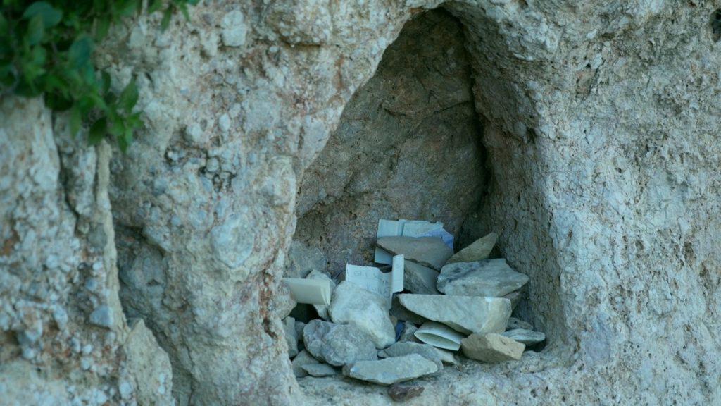 Τα σύγχρονα αναθηματικά χαρτάκια – ευχολόγια (τα περισσότερα γραμμένα στα αγγλικά, κάποια και στα… κινέζικα -η Αφροδίτη και ο Έρωτας εξάλλου «μιλούν» παγκόσμια γλώσσα), τα αποθέτουν οι ξένοι τουρίστες – επισκέπτες της Ακροπόλεως και των κλιτύων της στις κόγχες («ντουλαπάκια» τα έλεγαν οι παλιοί ντόπιοι), τις λαξεμένες στον ιερό βράχο.