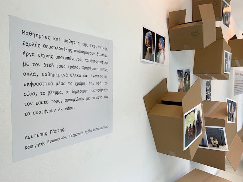 Μαθητές της Γερμανικής Σχολής Θεσσαλονίκης αναπαράγουν διάσημα έργα τέχνης αποτυπώνοντάς τα φωτογραφικά με τον δικό τους τρόπο. Χρησιμοποιώντας απλά, καθημερινά υλικά που υπάρχουν γύρω τους και έχοντας ως εκφραστικά μέσα το χρώμα, την υφή, το σώμα, το βλέμμα, οι δημιουργοί σκηνοθετούν τον εαυτό τους, συνομιλούν με το έργο και το συστήνουν εκ νέου.