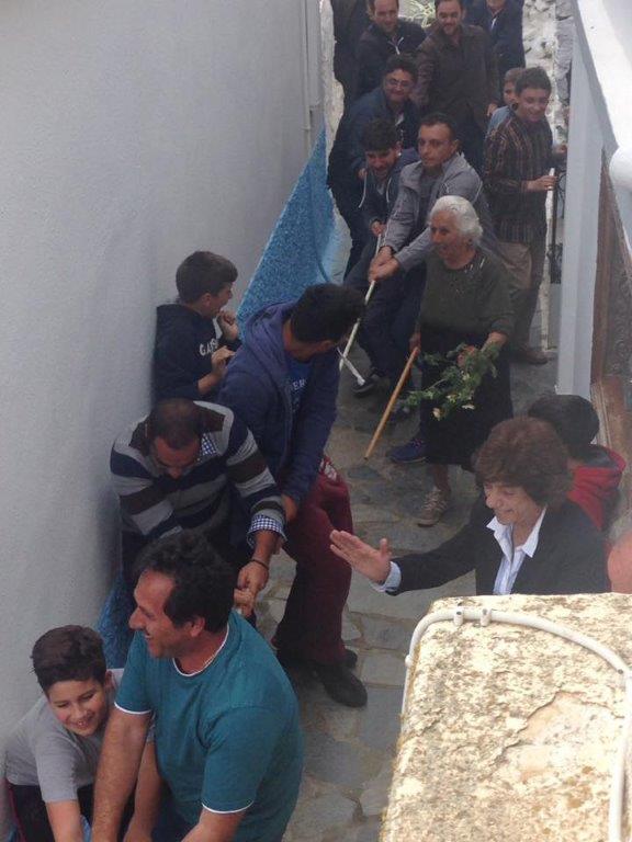 Το στενό στον Χριστό, απ’ τον καφενέ της Μαριγώς ως του Σακέλλη την αυλή, γεμίζει κόσμο, κάθε ηλικίας και φύλου. Παιδάκια 4-5 χρόνων, γριές και γέροι που ξεπερνούν τα ενενήντα, συγκεντρώνονται για να αναλάβει καθένας τον ρόλο του πρωταγωνιστή ή του κομπάρσου.