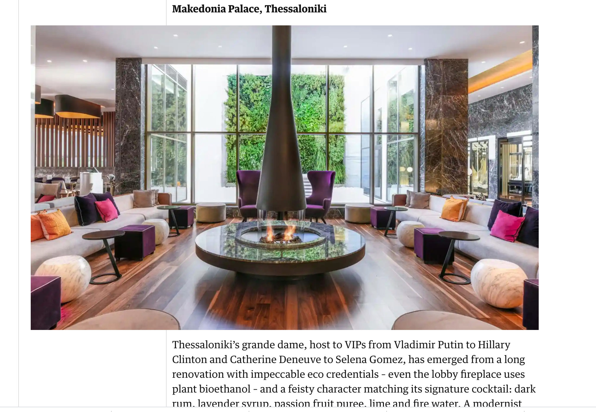 Πρόκειται για ξενοδοχεία και καταλύματα σε νησιά, την ενδοχώρα αλλά και μεγάλες πόλεις. Από τη Θεσσαλονίκη επέλεξε το εμβληματικό Makedonia Palace.