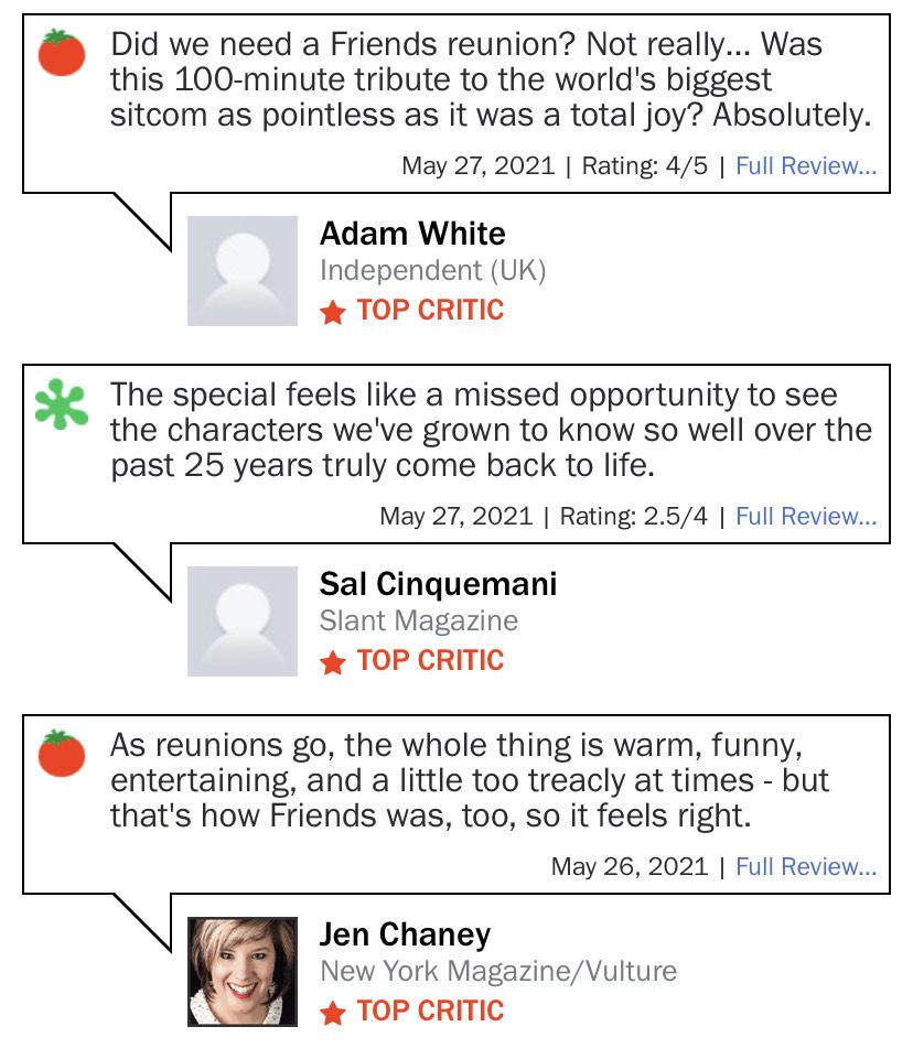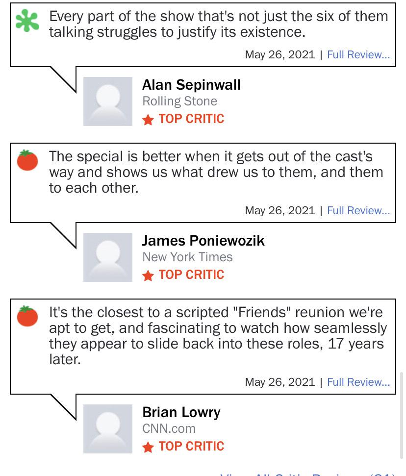 Να υπενθυμίσουμε ότι το επεισόδιο, δεν ήταν μέρος της σειράς ακριβώς. Όπως είχε δηλώσει το HBO Max πριν από καιρό: “Για να αποφευχθεί οποιαδήποτε παρεξήγηση σχετικά με το τι είναι αυτό το ξεχωριστό, θέλουμε να καταστήσουμε πολύ σαφές ότι αυτό δεν είναι ένα νέο, πρωτότυπο επεισόδιο της σειράς. Οι πρωταγωνιστές θα εμφανίζονται ως οι εαυτοί τους, όχι ως οι αγαπημένοι τους χαρακτήρες”.