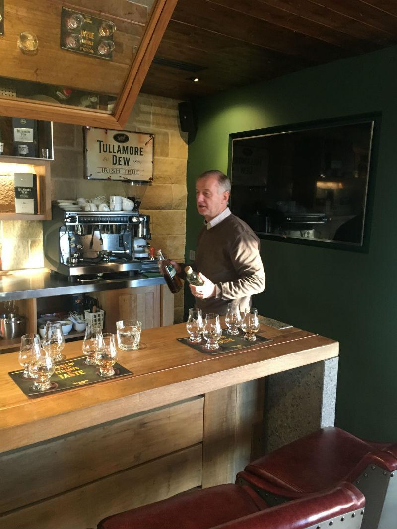 Στην είσοδο της κωμόπολης η πινακίδα Tullamore δεσπόζει. Μια πόλη που είναι γνωστή παγκόσμια για το ουίσκι της. Ή πως ένα προϊόν βάζει ένα τόπο στον παγκόσμιο χάρτη. Η μικρή πόλη έχει μια αξιοθαύμαστη ησυχία, κέρδισε δυο φορές το Χρυσό Μετάλλιο στα Εθνικά Βραβεία Καθαρής Πόλης, άνθρωποι περπατούν ανάμεσα σε μικρά καταστήματα, μπαρ και διώροφα σπίτια. Πλάι στο μικρό ποτάμι ένα σημείο ξεχωρίζει. Είναι το μικρό εκθετήριο και δοκιμαστήριο του Tullamore D.E.W.. Ένα ποτηράκι για αρχή και fish and chips μας υποδέχονται μαζί με μερικές ωραίες φωτογραφίες και αναμνηστικά που πωλούνται εδώ. Τελευταία στάση πριν την επίσκεψη που περιμένουμε όλοι ανυπόμονα.