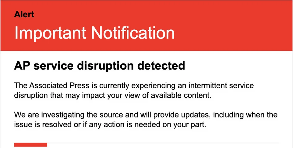 To Associated Press ενημέρωσε νωρίτερα πως αντιμετωπίζει διακοπές στις υπηρεσίες του, και γι’ αυτό ενδέχεται να επηρεάσει την προβολή του διαθέσιμου περιεχομένου.