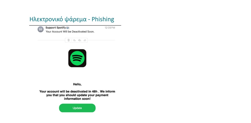 Εικόνα 1. Παράδειγμα email ηλεκτρονικού ψαρέματος με θέμα το Spotify (Πηγή: Spotify.com)