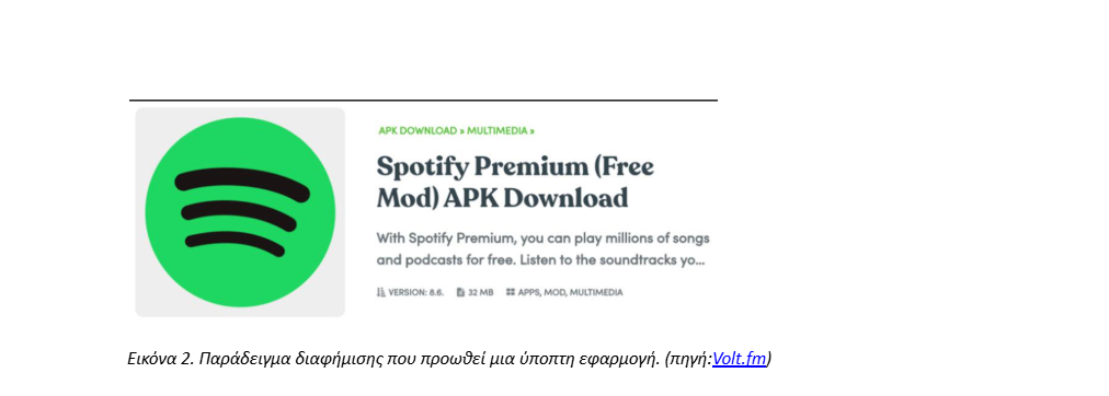 Εικόνα 2. Παράδειγμα διαφήμισης που προωθεί μια ύποπτη εφαρμογή. (πηγή:Volt.fm)