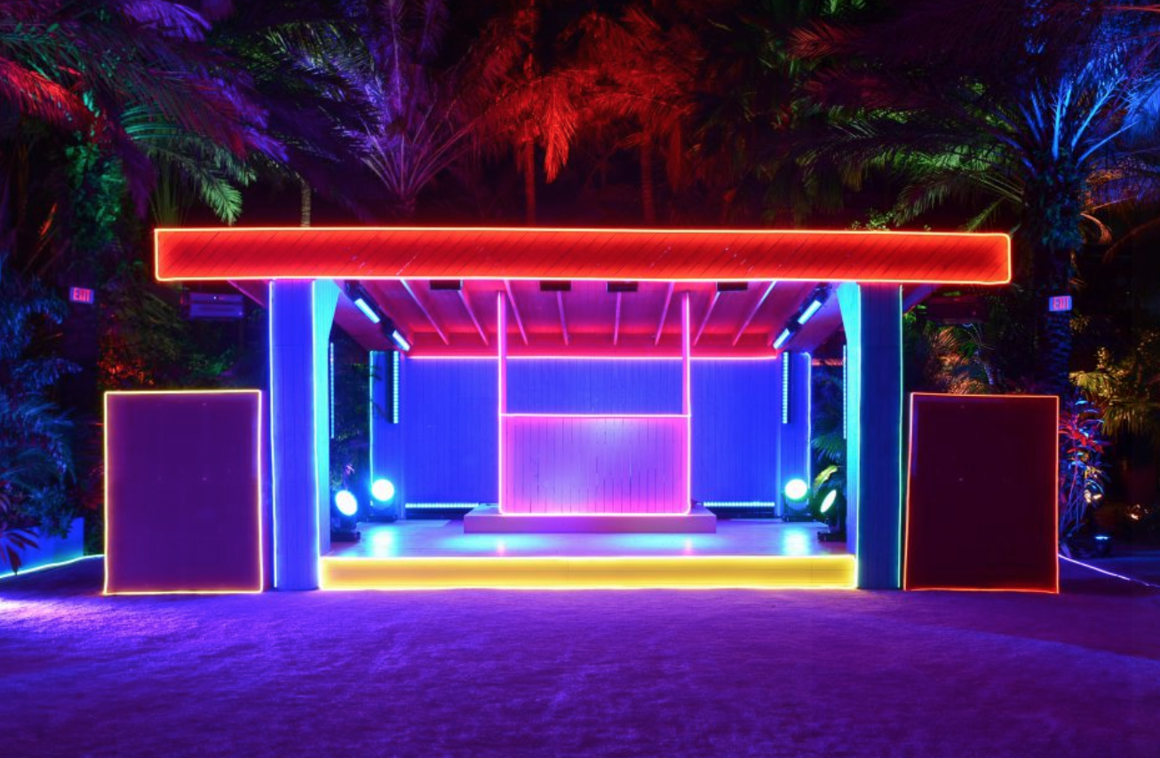 το «The Prada Double Club Miami», στο συγκρότημα ενός κινηματογραφικού στούντιο της δεκαετίας του 1920. Ένα κλαμπ σε εσωτερικό χώρο, και ένα σε εξωτερικό χώρο (σε έναν κήπο με τροπικά φυτά).