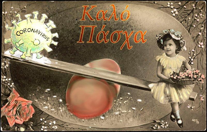Τα περιστεράκια, λουλουδάκια, καλαθάκια, λαγουδάκια, αυγουλάκια, κεράκια, λιβάδια, εκκλησιές, πρόσφορα, φλόγες, εσταυρωμένοι, και οι θερμές ευχές για “Καλό Πάσχα και Καλή Ανάσταση” ή σκέτο “Καλό Πάσχα” – και λιγότερο το αμιγώς ελληνικό “Καλή Λαμπρή” οι οποίες ενίοτε συνοδεύονταν με πρόσθετες – ευφάνταστες ή κοινότυπες ευχές για ειρήνη, ευημερία, αγάπη, στίχους ποιητών για τη “χαμένη άνοιξη” γενεών, για μια “μικρότατη Παρασκευή σε βαφή Μεγάλης βουτηγμένη” , αντικαταστάθηκαν φέτος με την αποκλειστική και μοναδική σχεδόν ευχή για ΥΓΕΙΑ και ΕΛΠΙΔΑ.