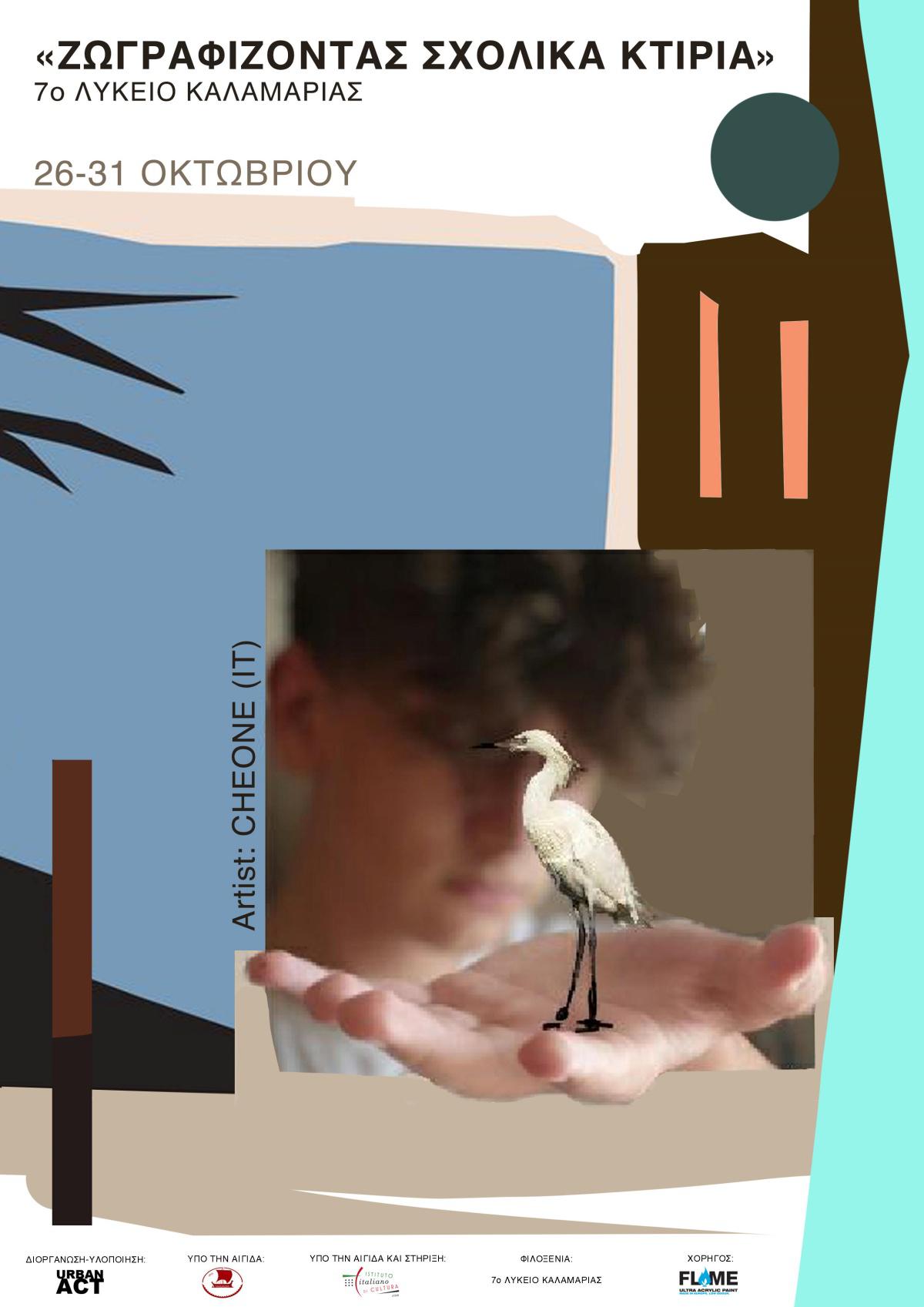 Η UrbanAct υλοποιεί μια νέα δημόσια τοιχογραφία στο 7ο Λύκειο Καλαμαριάς, με την συμμετοχή του Ιταλού προσκεκλημένου καλλιτέχνη Cheone, στα πλαίσια του προγράμματός της, “Ζωγραφίζοντας Σχολικά Κτίρια”.