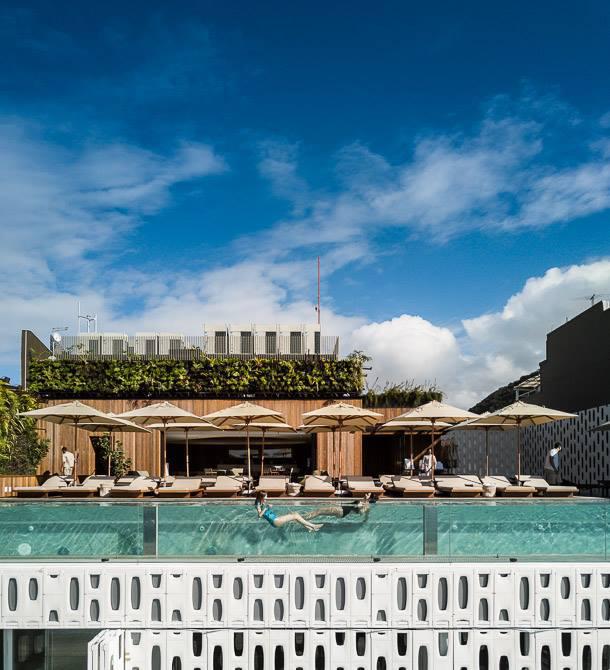 Ίσως και να είναι ο ορισμός για το τι είναι «ήρεμο λούσο»: να κολυμπάς στην πισίνα στην οροφή του ξενοδοχείου σου και, στρέφοντας το κεφάλι, να έχεις μέσα από το πλαϊνό γυάλινο τοίχωμά της άπλετη θέα μιας από τις πιο θρυλικές παραλίες στον πλανήτη, της Κοπακαμπάνα.