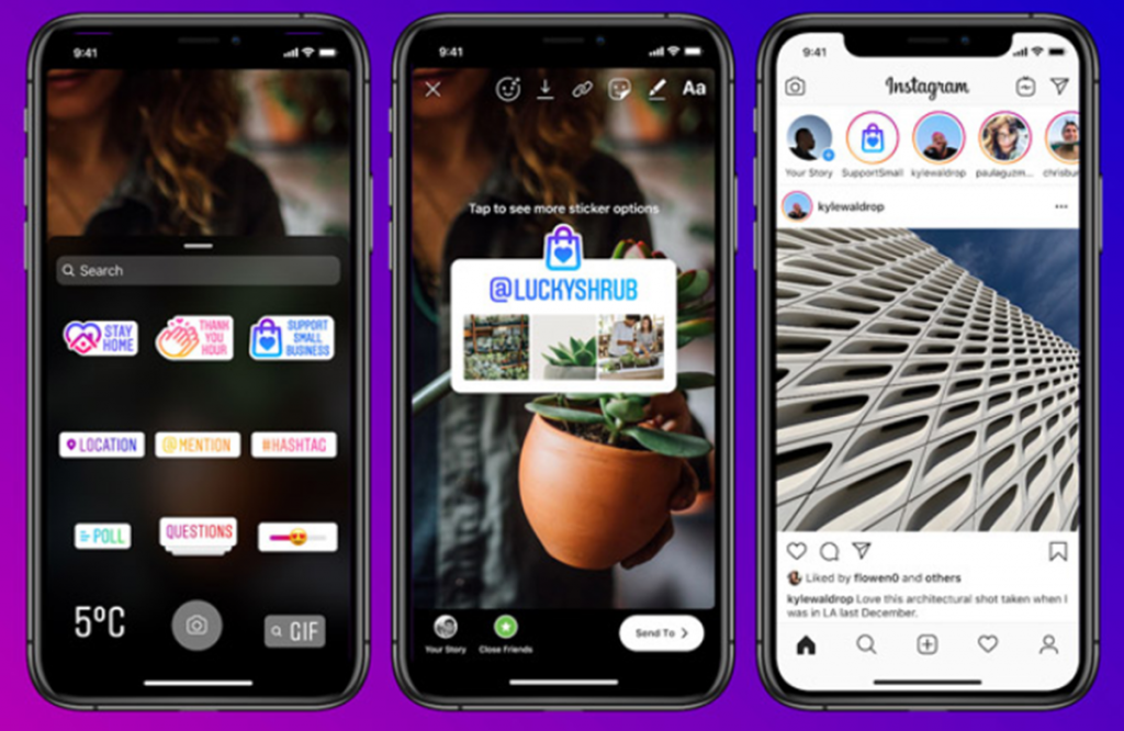 Με το νέο αυτοκόλλητο “Support Small Business” στο Instagram, οι χρήστες μπορούν εύκολα να δείξουν την αγάπη τους για τις τοπικές επιχειρήσεις στα Stories τους. Οι χρήστες μπορούν να κάνουν tag/mention τις επιχειρήσεις απευθείας στο αυτοκόλλητο για να δίνουν στους ακολούθους τους μια προεπισκόπηση του λογαριασμού. Όταν οι χρήστες χρησιμοποιούν το αυτοκόλλητο, η ιστορία τους θα προστεθεί σε μια κοινόχρηστη ιστορία Instagram, ώστε οι ακόλουθοί τους να μπορούν να το δουν μαζί με άλλες επιχειρήσεις που υποστηρίζουν τα άτομα που ακολουθούν.