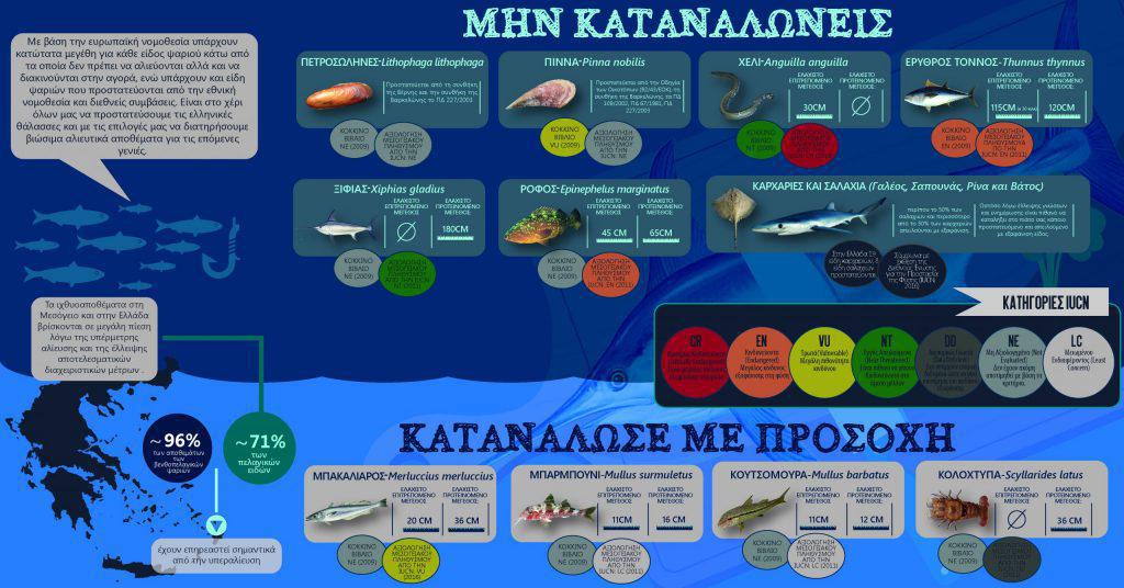 Όμως, σύμφωνα με την iSea, «πολλά είδη που βρίσκονται στους πάγκους των ιχθυοπωλείων απειλούνται από την υπεραλίευση, αλλά και την παράνομη αλίευση/πώληση, στο βωμό του κέρδους και της νοστιμιάς».