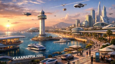 Μπορεί να ζούμε στις αρχές του 2026, αλλά οι συνθήκες να μοιάζουν με αυτές μιας δεκαετίας (και βάλε) πίσω, το Μετρό πάνω που το συνηθίσαμε σε λίγο θα ξανακλείσει εν αναμονή της γραμμής της καλαμαριάς, δρόμοι σε κακή κατάσταση, λεωφορεία της χωρίς air condition, μια πόλη που κάνει ελάχιστα βήματα προς το μέλλον συνεχίζοντας να μη δείχνει το σεβασμό που πρέπει στο ένδοξο παρελθόν της, μένοντας στάσιμη «τρώγοντας» τα ίδια της τα παιδιά, όμως εμείς ζητήσαμε από την Τεχνητή Νοημοσύνη να μας πάει ένα ταξίδι στο χρόνο, στο πιο κοντινό από όσο κάποτε φανταζόμασταν 2050 και να μας δείξει πώς (πιστεύει εκείνο) ότι θα μοιάζει μία από τις πιο όμορφες περιοχές της Θεσσαλονίκης, η Καλαμαριά.