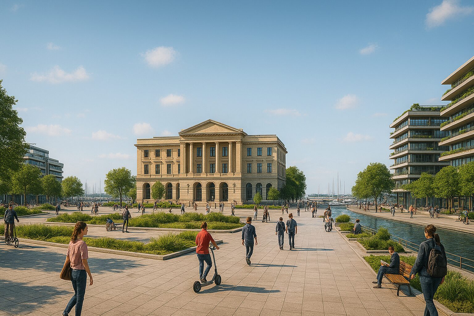Η τεχνητή νοημοσύνη βλέπει τη Θεσσαλονίκη του 2050 σαν ένα από τα καφέ της παραλίας. Γεμάτη κόσμο αλλά με ένα ανανεωμένο, πιο κομψό vibe!