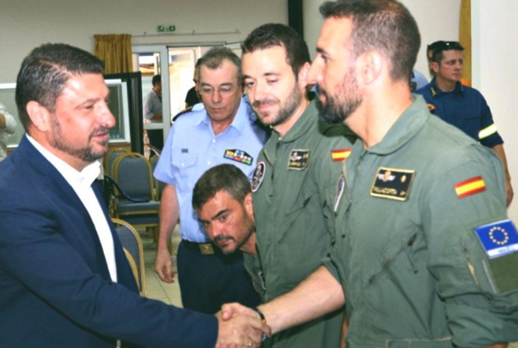 «Η συμβολή σας αποτελεί έμπρακτη ένδειξη των κοινών ευρωπαϊκών αξιών όπως η ευρωπαϊκή αλληλεγγύη και η προστασία της ζωής και της περιουσίας των Ευρωπαίων πολιτών», ανέφερε στον σύντομο χαιρετισμό του ο κ. Χαρδαλιάς και εξέφρασε τον θαυμασμό του για την προσπάθεια των Ιταλών και Ισπανών πιλότων, πάνω από την δύσκολη και επικίνδυνη πυρκαγιά της Εύβοιας.