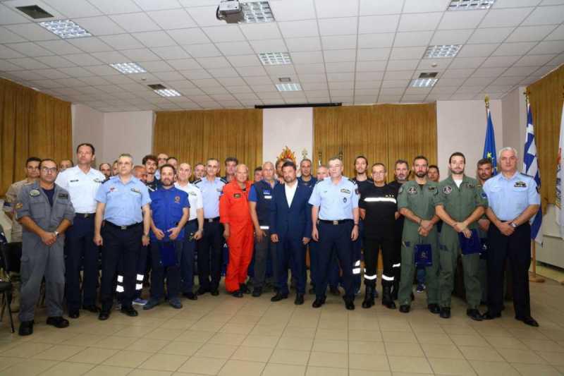 Τις ευχαριστίες όλων των Ελλήνων, εξέφρασε ο γενικός γραμματέας Πολιτικής Προστασίας Νίκος Χαρδαλιάς, στα πληρώματα των πυροσβεστικών αεροσκαφών της Ιταλίας και της Ισπανίας που συμμετείχαν στην κατάσβεση της πυρκαγιάς στην Εύβοια, κατά τη διάρκεια επίσημης τιμητικής εκδήλωσης για τη βράβευσή τους που διοργάνωσε η Γενική Γραμματεία Πολιτικής Προστασίας στο Ενιαίο Συντονιστικό Κέντρο Επιχειρήσεων του Πυροσβεστικού Σώματος στο Χαλάνδρι.