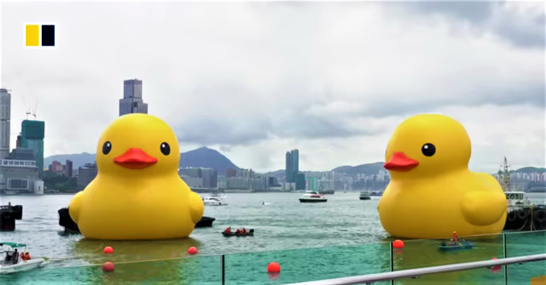 Δέκα χρόνια από την πρώτη εμφάνιση στο λιμάνι της Βικτόρια στο Χονγκ Κονγκ, το πελώριο παπάκι του Ολλανδού καλλιτέχνη Florentijn Hofman, επέστρεψε στα νερά του Τσινγκ Γι, και μάλιστα με… παρέα. Σύμφωνα με το CNN, τα Rubber Ducks, έχουν ύψος 18 μέτρων, δηλαδή είναι ελαφρώς μεγαλύτερα από εκείνο που είχε εμφανιστεί για πρώτη φορά στο Χονγκ Κονγκ.