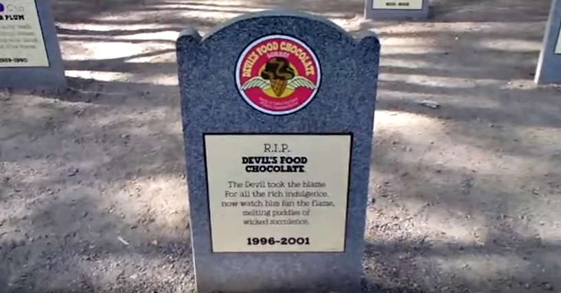 «Ψηλά, σ’ έναν λόφο του Βέρμοντ, υπάρχει ένα νεκροταφείο που είναι στοιχειωμένο από τα φαντάσματα παλαιών γεύσεων που κανένας δεν ήθελε» αναγράφεται σε μια χορταριασμένη έκταση πάνω από το εργοστάσιο παγωτού της φίρμας Ben & Jerry.