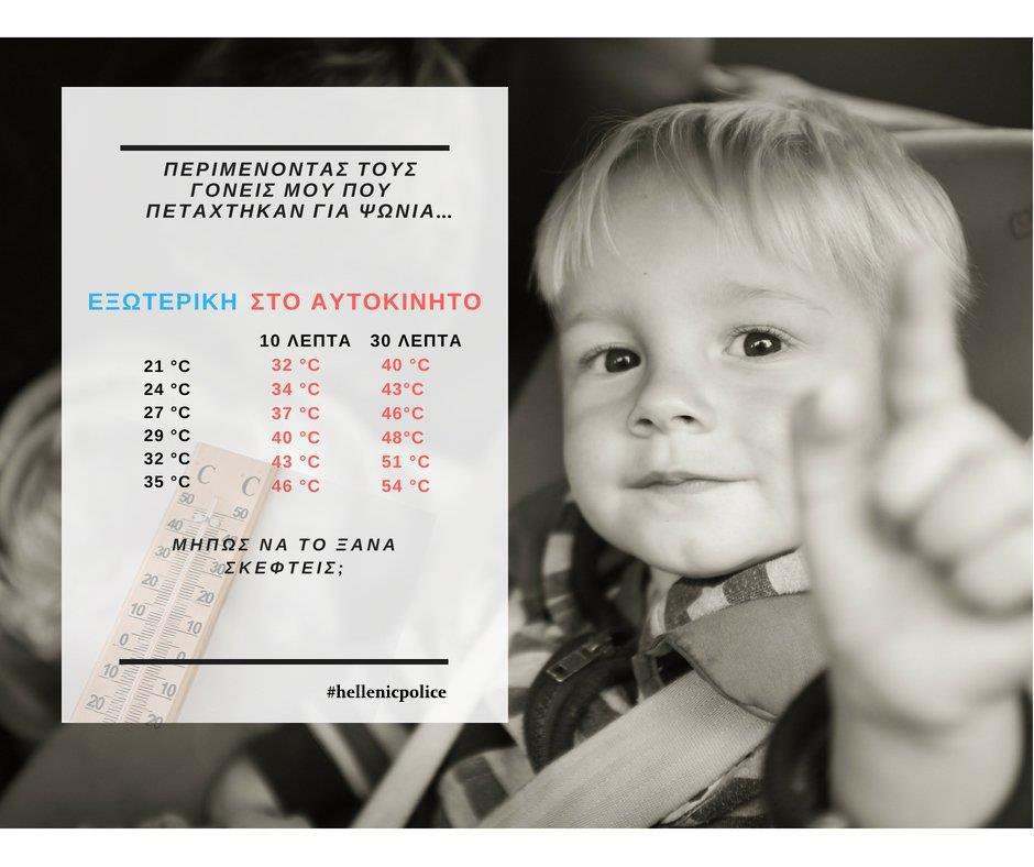 Μέσα σε μερικά λεπτά, η θερμοκρασία μέσα στο αυτοκίνητο αυξάνεται αισθητά με αποτέλεσμα να κινδυνεύουν από τη ζέστη τα μικρά αγόρια και κορίτσια.