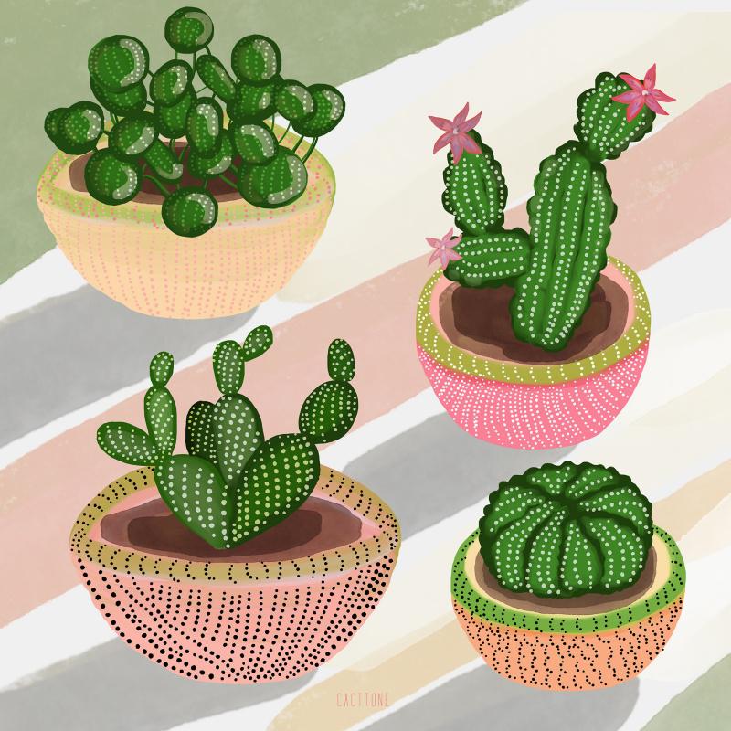 Ένα νέο project από την αυτοδίδακτη Θεσσαλονικιά, Γιούλη Μπέλλου έρχεται να «ταράξει» τον δημιουργικό κόσμο της εικονογράφησης στην Ελλάδα. Μικρά κακτάκια και φυτά σε έντονους χρωματισμούς, δημιουργώντας αντιθέσεις με τον περιβάλλοντα χώρο κυριαρχούν στο project της. «Είναι αφιερωμένο σε ανθρώπους που αγαπούν τους κάκτους και τα φυτά σε όλο τον κόσμο, με σκοπό να διοχετεύει την χαρά των απλών πραγμάτων και τη σύνδεση με την φύση μέσα σε μια αστική πραγματικότητα γεμάτη με πυρετώδεις και αγχωτικούς ρυθμούς.»