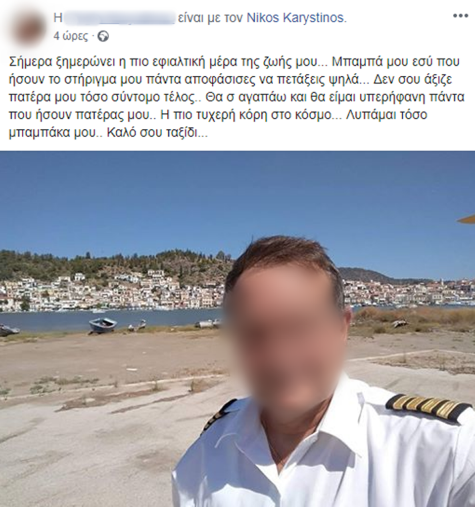 H κόρη του πιλότου έγραψε αναρτώντας την φωτογραφία του μπαμπά της: