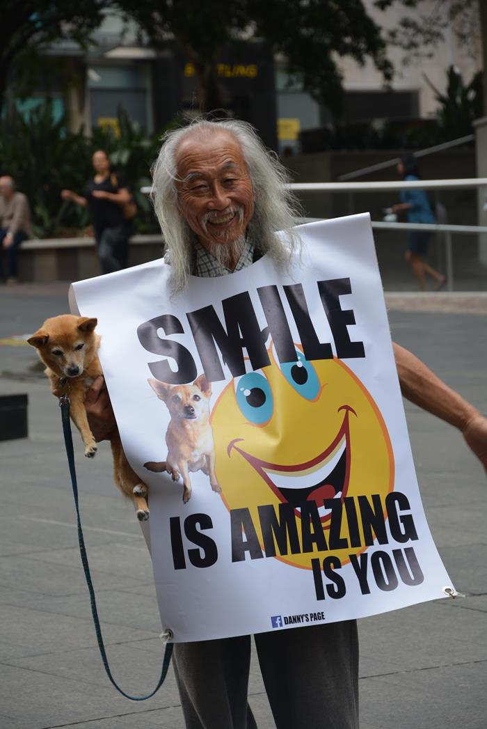 Ξαφνικά εμφανίζεται στην πλατεία ο «τρελός του χωριού» ! Ένας συμπαθητικός Ασιάτης γεράκος ο οποίος ήταν μονίμως χαμογελαστός ενώ είχε κρεμασμένο πάνω του ένα πλακάτ με συνθήματα και αναφορές στο χρήμα, το γέλιο, την ανθρωπότητα κτλ του τύπου «χαμογελάστε είναι καταπληκτικό, είστε εσείς» κ.α.